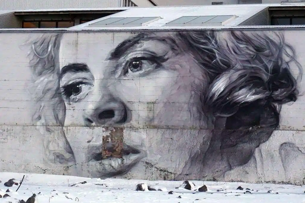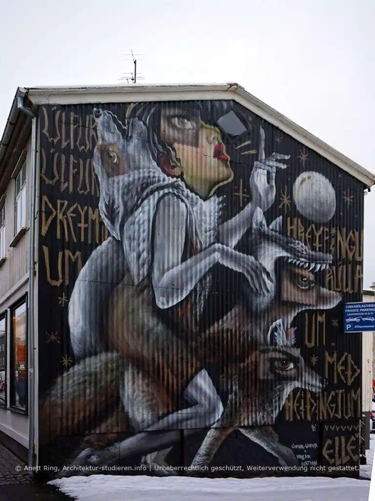 Das spannendste an der isländischen Street-Art-Szene ist, dass die meisten Kunstwerke offiziell genehmigt und/oder beauftragt worden sind, also recht wenig im Untergrund passiert. Viele der riesigen Wandbilder basieren auf Fantasiefiguren und sind gepaart mit witzigen oder intelligenten Versen. Einige entstanden als #wallpoetry beim Iceland-Airwaves-Festival, einem Musik-Festival das 2015 in Kooperation mit Urban Nation (Berlin) veranstaltet wurde. Bei diesem Projekt brachte man kreative Köpfe unterschiedlicher Genres zusammen. Die Künstler ließen sich von Gedichten, Liedern und Zitaten inspirieren und gestalteten dazu passende Wandbilder. So entstand über die ganze Stadt hinweg fantastische Street-Art!