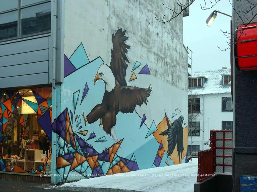 Schneestürme und eine starke Erkältung machten mir einen ordentlichen Strich durch meine Planungen. Ich hatte zwar ein Auto mit Allradantrieb und den – in Island typischen – Spikes in den Reifen gemietet, aber das alles nützt nichts, wenn die Straßen tagelang gesperrt werden. Notgedrungen, aber nicht weniger optimistisch, erkundete ich also zunächst Reykjavík – und war überrascht von der quirligen, kleinen Stadt. Schnell sprangen mir die zahlreichen bunten Fassaden und Graffitis in die Augen, die sich hinter fast jedem Flur, an jedem Gebäude und jedem Bauzaun befanden.